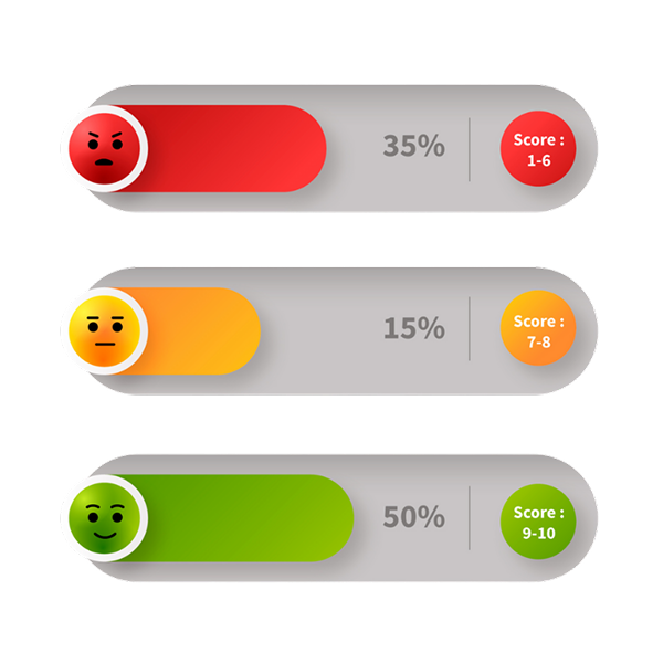 Detratores (0-6): Clientes insatisfeitos que podem prejudicar sua reputação através de comentários negativos.